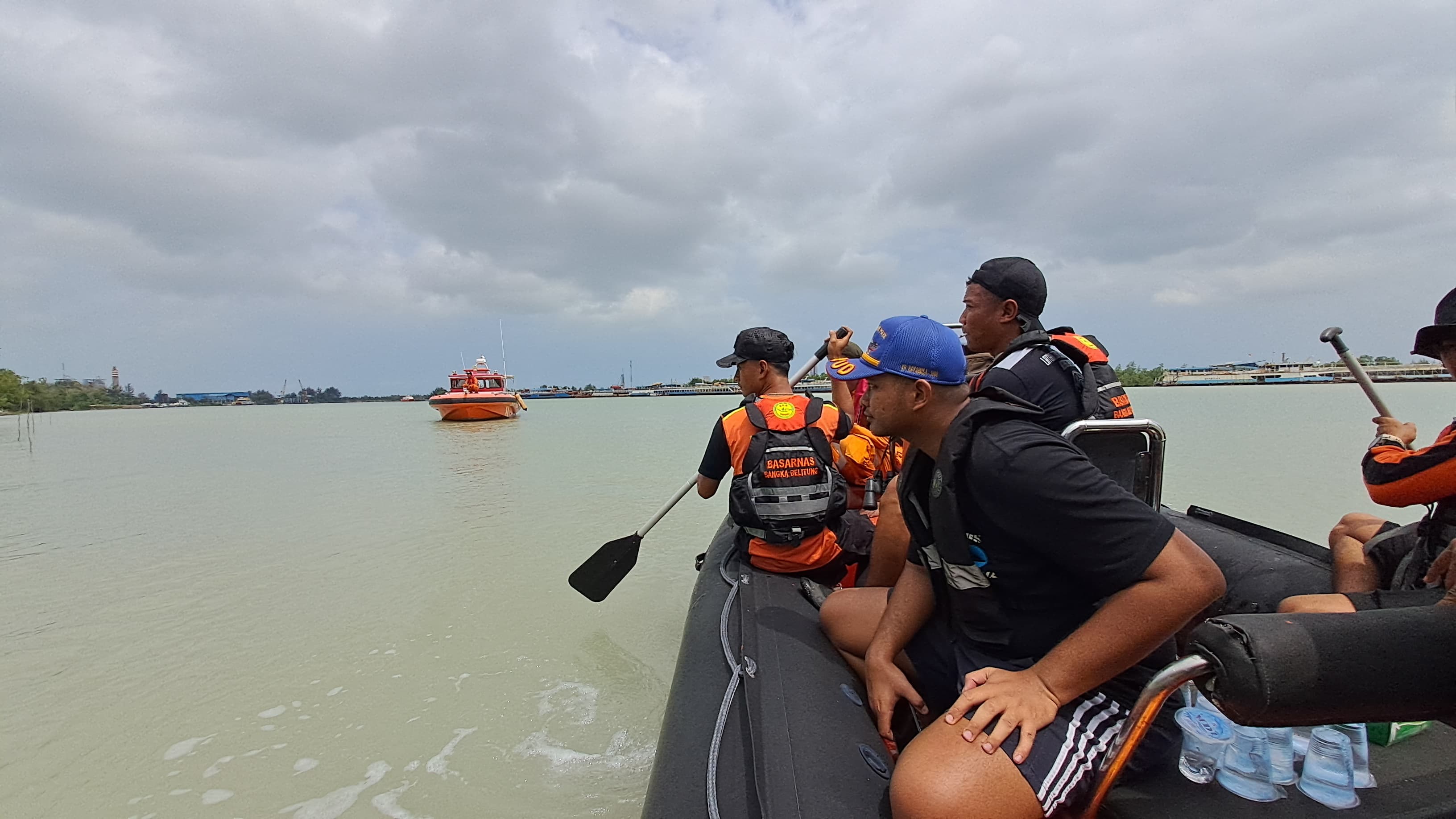 Menerima informasi tersebut Kantor SAR Pangkalpinang memberangkatkan 1 tim rescue menuju lokasi kejadian guna mencari keberadaan korban. Tim SAR gabungan yang terdiri dari tim rescue Kantor SAR Pangkalpinang, ABK KN SAR Karna, Ditpolairud Polda Babel, Satpolairud Polres Pangkalpinang, Laskar Sekaban, dan SakaSAR Pangkalpinang dengan menggunakan RBB dan perahu karet menuju lokasi kejadian. Tim juga mengiperasikan drone untuk mencari korban melalui udara.