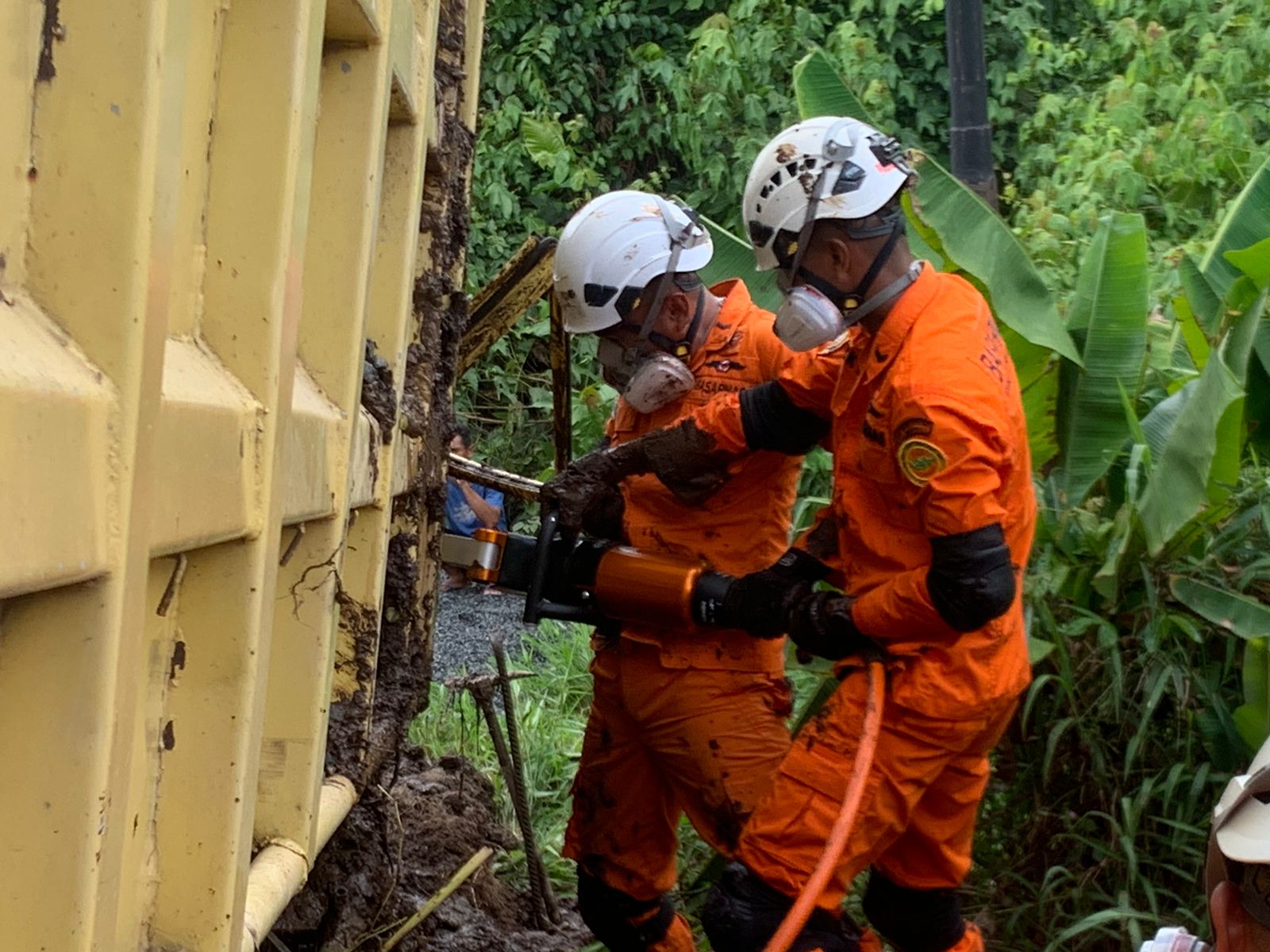 Tim Rescue Kantor SAR Palangka Raya menggunakan peralatan ekstrikasi untuk memudahkan proses evakuasi terhadap korban. Tidak berselang lama korban berhasil dikeluarkan dari dalam kabin dalam kondisi meninggal dunia.