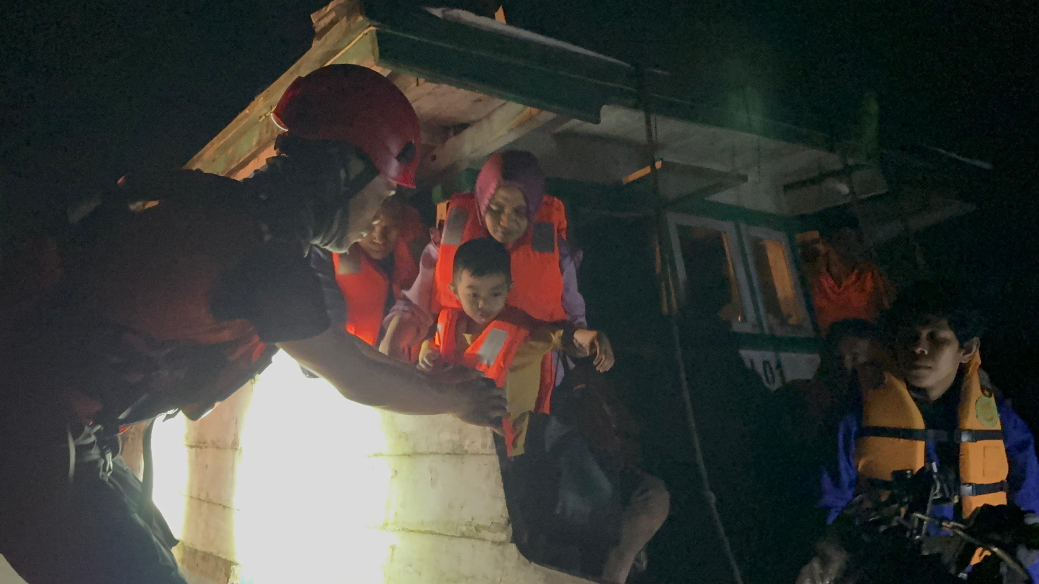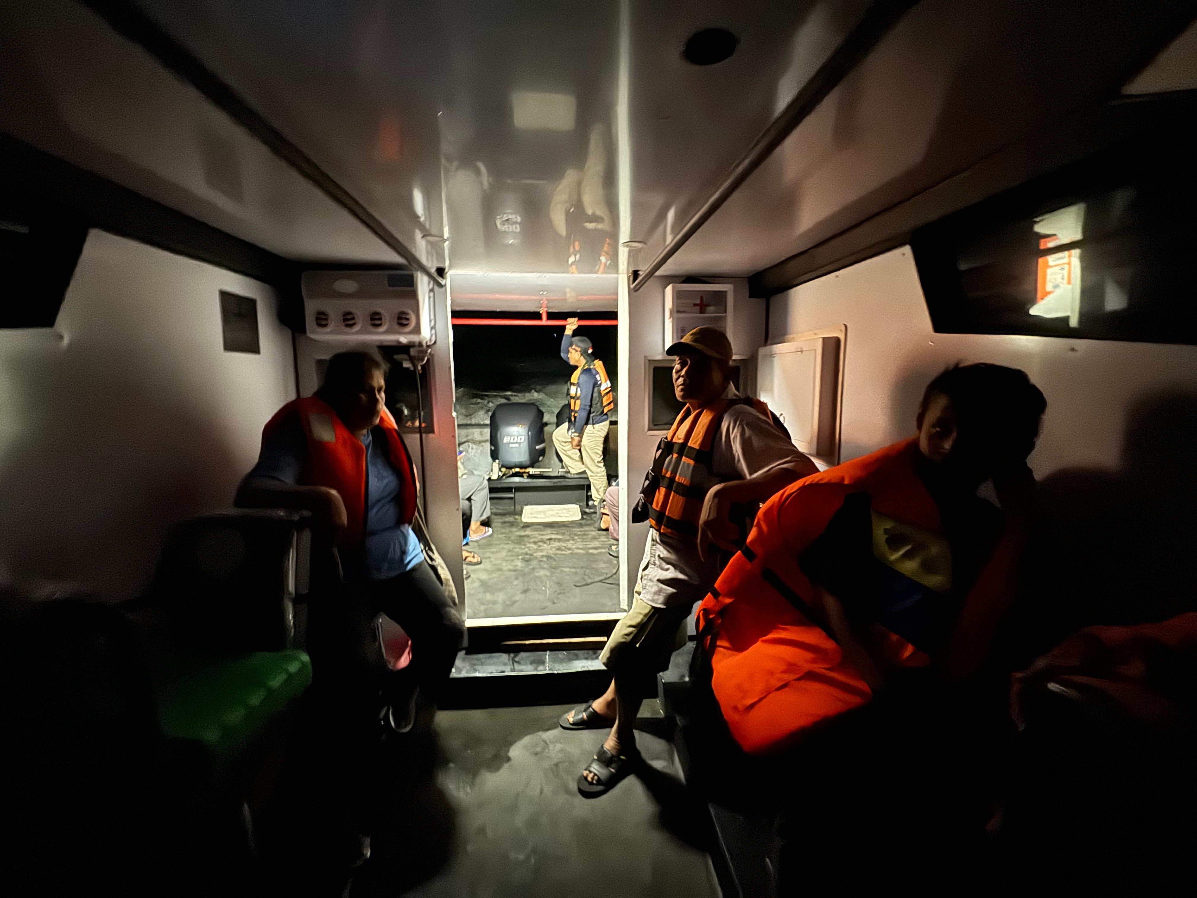 Tim rescue unit siaga SAR Banggai Laut menuju lokasi kejadian dengan menggunakan Rigid Bouyancy Boat (RBB) Setibanya di lokasi tim langsung mengevakuasi seluruh penumpang dengan terlebih dahulu membagikan lift jacket kepada penumpang untuk dipakai sebagai safety selama perjalanan menuju pelabuhan Banggai Laut.