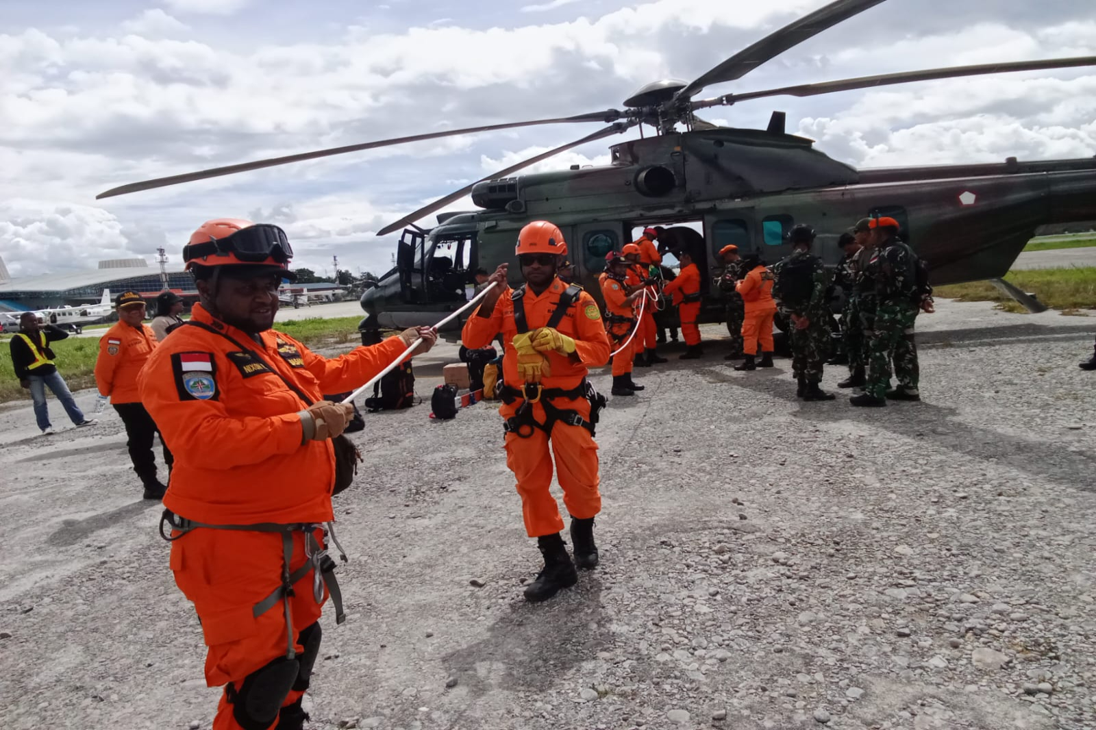 Kepala seksi operasi Kantor SAR Jayapura, berkoordinasi dengan Lanud Silas Papre untuk menggunakan heli dari TNI AU dalam proses evakuasi. Sabtu, (23/6) Heli Caracal milik TNI AU dirterbangkan dari Sentani dan mendarat di Wamena pukul 10.26 WIT.
