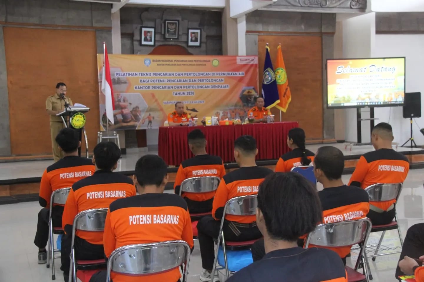 Karangasem --- Sekretaris Daerah Kabupaten Karangasem, I Ketut Sedana Merta, S.T. M.T.membuka secara resmi Pelatihan Potensi SAR Teknis Pencarian dan Pertolongan di Permukaan Air di Kabupaten Karangasem Senin pagi, (8/7/2024). Kegiatan yang dilaksanakan oleh Kantor Pencarian dan Pertolongan Denpasar ini melibatkan sekitar 50 orang peserta yang terdiri dari unsur TNI/Polri, instansi pemerintah, organisasi masyarakat, resimen mahasiswa serta masyarakat umum.