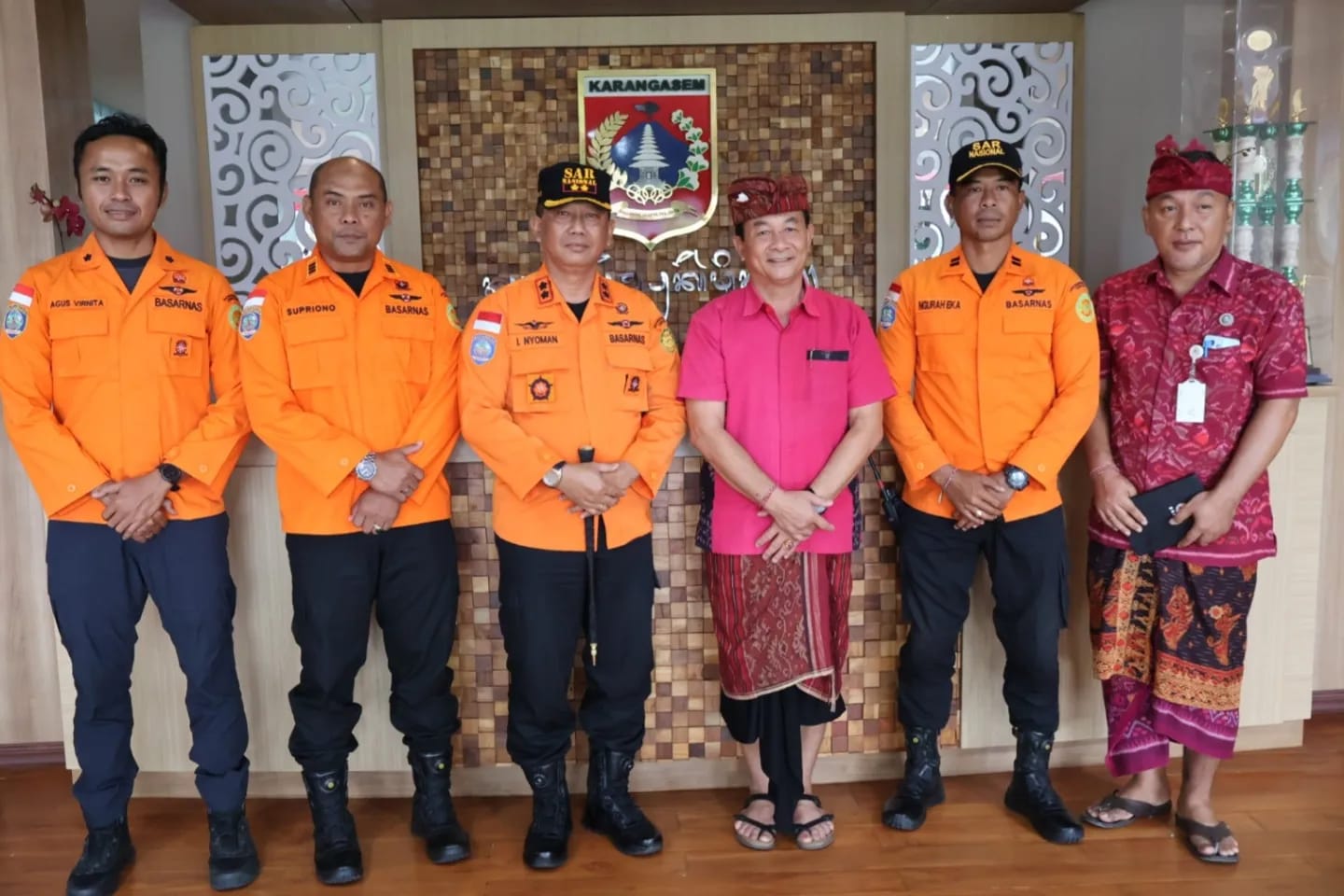 KARANGASEM --- Kepala Kantor Pencarian dan Pertolongan Denpasar (Basarnas Bali), I Nyoman Sidakarya, S.H. didampingi Kasi Sumber Daya SAR, Supriono, S.H. dan rombongan melaksanakan audiensi ke Kantor Bupati Karangasem pada Kamis, (4/7/2024). Rombongan Basarnas diterima langsung oleh Bupati Karangasem, I Gede Dana, S.Pd.,M.Si. didampingi Kepala Bidang Pencegahan dan Kesiapsiagaan BPBD Karangasem, I Made Sumeka Regen.