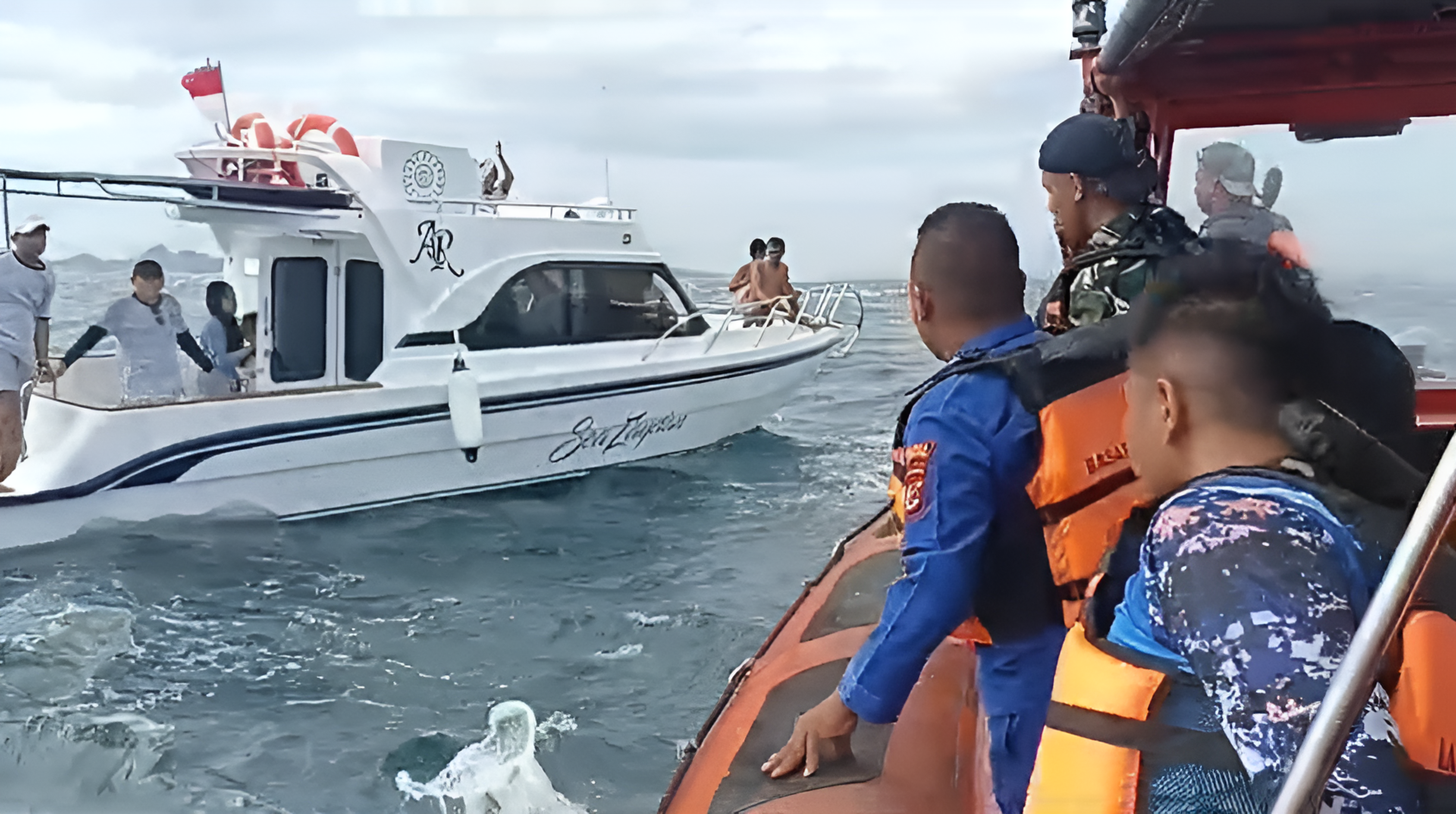"Langsung dikerahkan Tim SAR Gabungan menggunakan Kapal RIB Pos SAR Manggarai Barat menuju lokasi kejadian, sekitar pukul 13.50 Wita, saat diperjalanan menuju lokasi, tim berpapasan dengan speed Sea Zaydan yang telah terlebih dahulu menyelamatkan ke empat korban yang kebetulan melintas di lokasi kejadian, dengan sigap tim langsung mengevakuasi seluruh korban menuju labuan bajo menggunakan kapal rib untuk mendapatkan perawatan medis." terang Ridwan